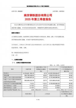 [企业年报]南钢股份:南京钢铁股份有限公司2025年第三季度报告(银创产业通www.chanyetong.net)