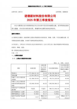 [企业年报]诺德股份:诺德新材料股份有限公司2025年第三季度报告(银创产业通www.chanyetong.net)