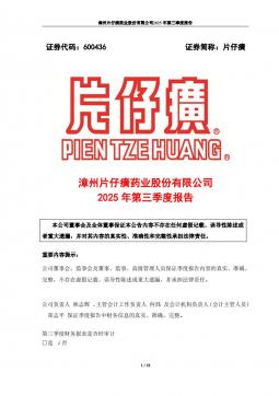 [企业年报]片仔癀:漳州片仔癀药业股份有限公司2025年第三季度报告(银创产业通www.chanyetong.net)