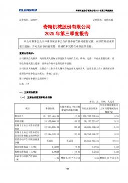 [企业年报]奇精机械:2025年第三季度报告(银创产业通www.chanyetong.net)
