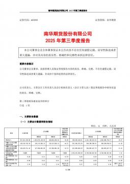 [企业年报]南华期货:南华期货股份有限公司2025年第三季度报告(银创产业通www.chanyetong.net)