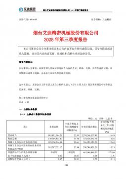 [企业年报]艾迪精密:艾迪精密2025年第三季度报告(银创产业通www.chanyetong.net)