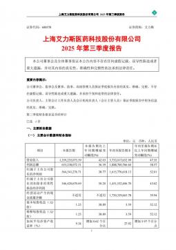 [企业年报]艾力斯:上海艾力斯医药科技股份有限公司2025年第三季度报告(银创产业通www.chanyetong.net)
