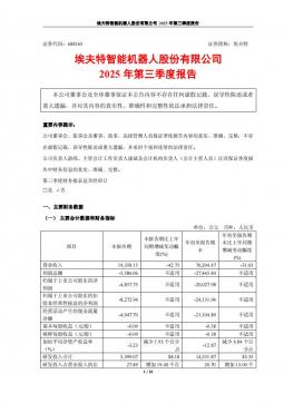 [企业年报]埃夫特:埃夫特2025年第三季度报告(银创产业通www.chanyetong.net)