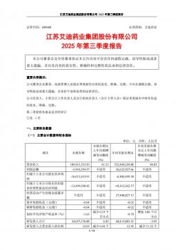 [企业年报]艾迪药业:艾迪药业2025年第三季度报告(银创产业通www.chanyetong.net)