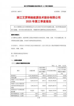 [企业年报]艾罗能源:2025年第三季度报告(银创产业通www.chanyetong.net)