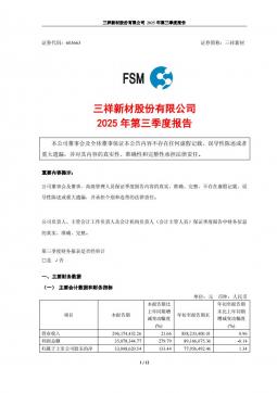 [企业年报]三祥新材:三祥新材股份有限公司2025年第三季度报告(银创产业通www.chanyetong.net)