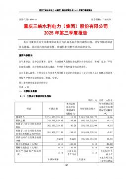 [企业年报]三峡水利:重庆三峡水利电力(集团)股份有限公司2025年第三季度报告(银创产业通www.chanyetong.net)