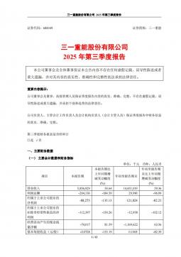 [企业年报]三一重能:三一重能2025年第三季度报告(银创产业通www.chanyetong.net)