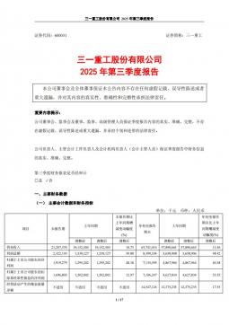 [企业年报]三一重工:三一重工股份有限公司2025年第三季度报告(银创产业通www.chanyetong.net)