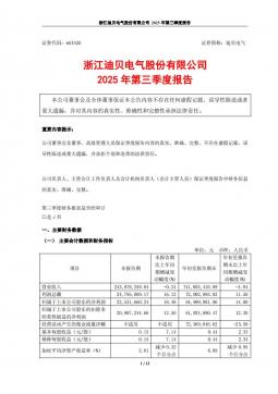 [企业年报]迪贝电气:2025年第三季度报告(银创产业通www.chanyetong.net)