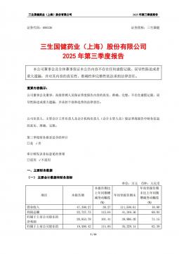 [企业年报]三生国健:三生国健:2025年第三季度报告(银创产业通www.chanyetong.net)