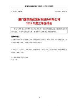 [企业年报]厦钨新能:厦门厦钨新能源材料股份有限公司2025年第三季度报告(银创产业通www.chanyetong.net)