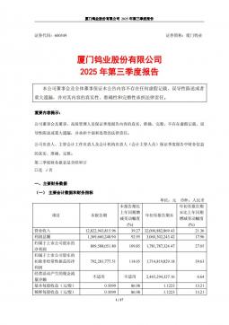 [企业年报]厦门钨业:厦门钨业2025年第三季度报告(银创产业通www.chanyetong.net)