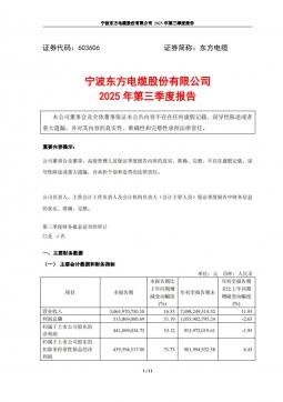[企业年报]东方电缆:东方电缆2025年第三季度报告(银创产业通www.chanyetong.net)