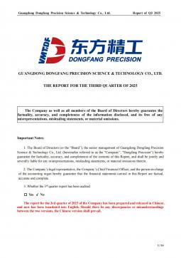 [企业年报]东方精工:2025年第三季度报告(英文)(银创产业通www.chanyetong.net)