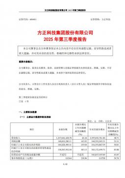 [企业年报]方正科技:方正科技2025年第三季度报告(银创产业通www.chanyetong.net)