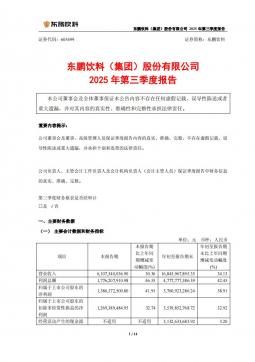 [企业年报]东鹏饮料:东鹏饮料(集团)股份有限公司2025年第三季度报告(银创产业通www.chanyetong.net)