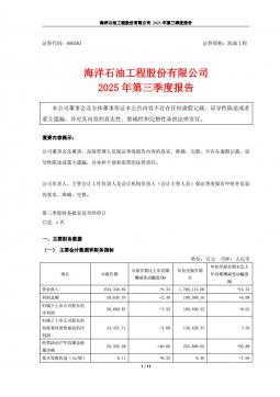 [企业年报]海油工程:海油工程2025年第三季度报告(银创产业通www.chanyetong.net)