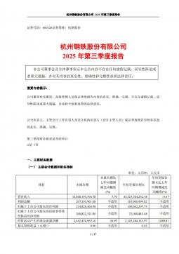 [企业年报]杭钢股份:杭州钢铁股份有限公司2025年第三季度报告(银创产业通www.chanyetong.net)