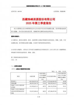 [企业年报]西藏珠峰:2025年第三季度报告(银创产业通www.chanyetong.net)