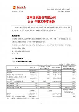 [企业年报]西南证券:西南证券股份有限公司2025年第三季度报告(银创产业通www.chanyetong.net)