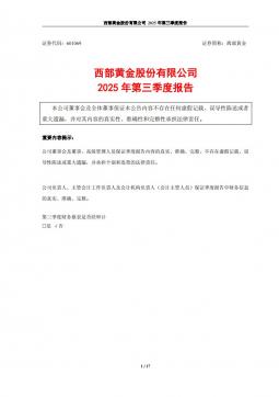 [企业年报]西部黄金:西部黄金股份有限公司2025年第三季度报告(银创产业通www.chanyetong.net)