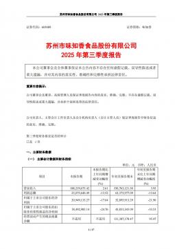 [企业年报]味知香:2025年第三季度报告(银创产业通www.chanyetong.net)