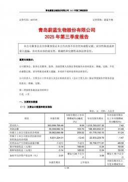 [企业年报]蔚蓝生物:青岛蔚蓝生物股份有限公司2025年第三季度报告(银创产业通www.chanyetong.net)