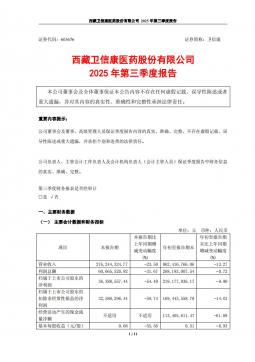 [企业年报]卫信康:西藏卫信康医药股份有限公司2025年第三季度报告(银创产业通www.chanyetong.net)