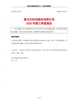 [企业年报]雅戈尔:雅戈尔时尚股份有限公司2025年第三季度报告(银创产业通www.chanyetong.net)