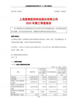 [企业年报]宣泰医药:2025年第三季度报告(银创产业通www.chanyetong.net)