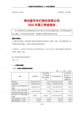 [企业年报]星宇股份:星宇股份2025年第三季度报告(银创产业通www.chanyetong.net)