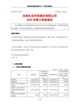 [企业年报]东珠生态:东珠生态环保股份有限公司2025年第三季度报告(银创产业通www.chanyetong.net)