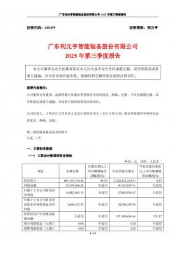 [企业年报]利元亨:广东利元亨智能装备股份有限公司2025年第三季度报告(银创产业通www.chanyetong.net)