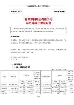 [企业年报]昆药集团:昆药集团2025年第三季度报告(银创产业通www.chanyetong.net)