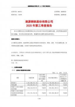 [企业年报]凌钢股份:凌源钢铁股份有限公司2025年第三季度报告(银创产业通www.chanyetong.net)