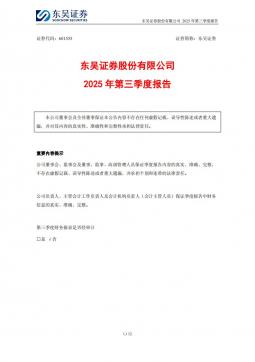 [企业年报]东吴证券:东吴证券股份有限公司2025年第三季度报告(银创产业通www.chanyetong.net)