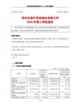 [企业年报]东微半导:苏州东微半导体股份有限公司2025年第三季度报告(银创产业通www.chanyetong.net)