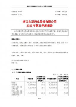 [企业年报]东亚药业:东亚药业2025年第三季度报告(银创产业通www.chanyetong.net)