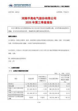 [企业年报]平高电气:河南平高电气股份有限公司2025年第三季度报告(银创产业通www.chanyetong.net)