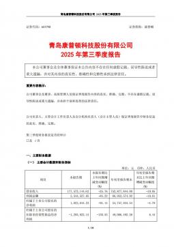 [企业年报]康普顿:青岛康普顿科技股份有限公司2025年第三季度报告(银创产业通www.chanyetong.net)