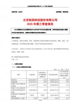 [企业年报]凯因科技:凯因科技2025年第三季度报告(银创产业通www.chanyetong.net)