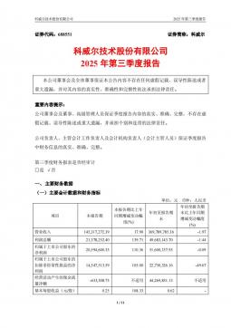 [企业年报]科威尔:2025年第三季度报告(银创产业通www.chanyetong.net)