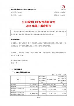 [企业年报]江山欧派:江山欧派2025年第三季度报告(银创产业通www.chanyetong.net)