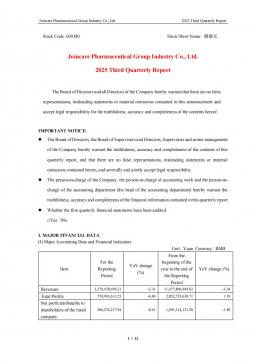 [企业年报]健康元:健康元药业集团股份有限公司2025年第三季度报告(英文)(银创产业通www.chanyetong.net)
