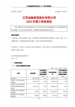 [企业年报]江苏金租:江苏金租:2025年第三季度报告(银创产业通www.chanyetong.net)