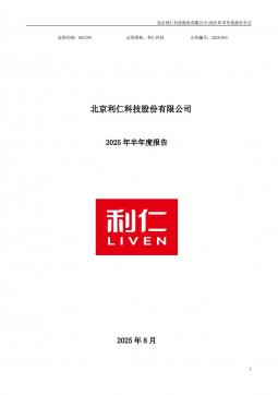 [企业年报]利仁科技:2025年半年度报告(银创产业通www.chanyetong.net)