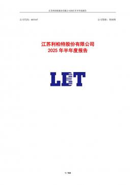 [企业年报]利柏特:2025年半年度报告(银创产业通www.chanyetong.net)