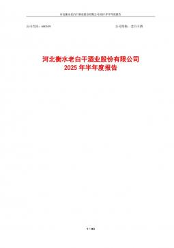 [企业年报]老白干酒:河北衡水老白干酒业股份有限公司2025年半年度报告(银创产业通www.chanyetong.net)